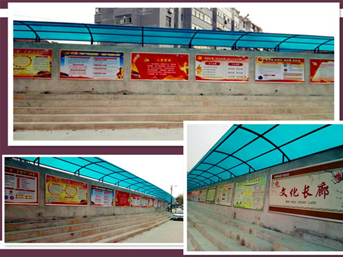 七月流火的夏季,黨員干部、志愿者們頂著烈日將幾百平米的雜草全部清除,并將路肩鋪上水泥地,方便了行走,同時在下坡處蓋起了一座長116米的宣傳欄。上面30多塊宣傳中央文件精神和“兩學(xué)一做”內(nèi)容以及黨員學(xué)習(xí)材料的噴繪展板一字排開,與活動中心相映生輝。許多提前來開會學(xué)習(xí)或活動的黨員,都愛三五成群地站在這里觀看學(xué)習(xí)交流。除此之外,平時也有些來此休閑散步的群眾駐足觀看,說像這樣百米長的文化宣傳陣地還真是頭一次見到。