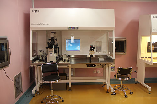 醫(yī)院嚴格按照國家衛(wèi)計委《人類輔助生殖技術規(guī)范》的要求進行輔助生殖技術實驗室的建設和儀器設備的配備,其中新實驗室面積占到一半,大大提高了為不孕患者提供服務的能力。新建成的生殖醫(yī)學中心場地包括候診區(qū)、診療室、檢查室、精液處理室、男科手術室、超聲排卵監(jiān)測室、遺傳學分析室、人工授精實驗室、取卵室、體外受精實驗室、胚胎移植室等治療檢查區(qū)域,同時配備了一流的儀器設備,如精液質(zhì)量分析系統(tǒng)、德國Wolf宮腔鏡、澳大利亞Cook公司的三氣胚胎培養(yǎng)箱、丹麥的Origo IVF工作站、日本尼康TE3000倒置顯微鏡和顯微操作系統(tǒng)等國內(nèi)外先進的醫(yī)療設備。擴建后的實驗室能夠施行卵胞漿內(nèi)單精子注射、配子(包括精子、卵子)和胚胎的玻璃化冷凍技術、囊胚培養(yǎng)、輔助孵出、短時受精等多種先進技術,每年可進行3000—4000個周期的試管嬰兒治療。