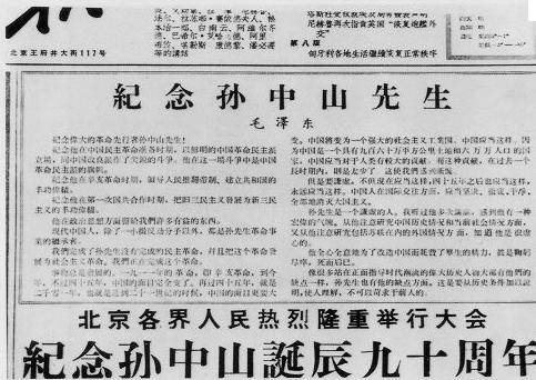 這是毛澤東同志為紀(jì)念孫中山先生誕辰九十周年寫的文章?d于《人民日?qǐng)?bào)》(一九五六年十一月十二日)