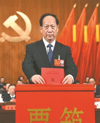 石泰峰同志投票選舉中共江蘇省第十三屆委員會委員。 新華報業(yè)全媒體記者 朱江 吳勝 肖勇攝