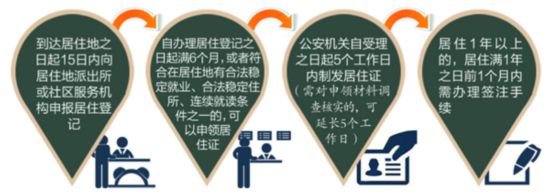 對符合居住證辦理?xiàng)l件的,公安機(jī)關(guān)應(yīng)當(dāng)自受理之日起5個(gè)工作日內(nèi)制作發(fā)放居住證。需要對申領(lǐng)材料調(diào)查核實(shí)的,可以延長5個(gè)工作日。對不符合居住證辦理?xiàng)l件的,應(yīng)當(dāng)告知申領(lǐng)人并說明理由。居住證一人一證,居住1年以上的,居住證持有人應(yīng)當(dāng)在居住每滿1年之日前1個(gè)月內(nèi),到居住地公安派出所或者受公安機(jī)關(guān)委托的社區(qū)服務(wù)機(jī)構(gòu)辦理簽注手續(xù)。逾期未辦理簽注手續(xù)的,居住證使用功能中止。居住證持有人在本省行政區(qū)域內(nèi)變動(dòng)居住地址的,應(yīng)當(dāng)自住址變動(dòng)之日起15日內(nèi)辦理變更登記。