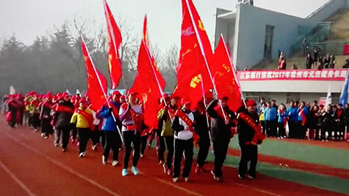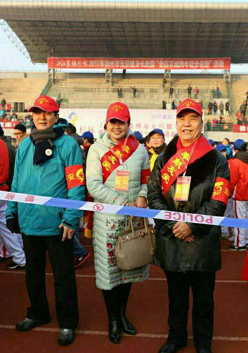 此次長跑活動(dòng)是“江蘇銀行杯2017年徐州市元旦健身長跑暨全國百城跨年徒步迎新”和徐州市委宣傳部徐州市體育局等多家單位聯(lián)合主辦的,陣容強(qiáng)大。莊嚴(yán)的國歌奏響后,有關(guān)領(lǐng)導(dǎo)致辭,之后徐州市公安局組成第一方隊(duì),特警等陸續(xù)跑過主席臺(tái)。徐州市平安志愿者聯(lián)合會(huì)泉山區(qū)協(xié)會(huì)一百多人高舉紅旗,頭戴紅帽精神抖擻地跑過主席臺(tái),徐州人民廣播電臺(tái)主持人特別介紹了平安志愿者在為社會(huì)安定、和諧工作中發(fā)揮的重要作用,得到市局有關(guān)領(lǐng)導(dǎo)的充分肯定。