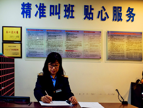 叫班人員深知,高鐵在徐州東能否準點運行,首先取決于能否準點叫班。為此,叫班人員始終秉承“精準叫班,貼心服務”的理念,把精準叫班細化到一個環(huán)節(jié)當中。即每個機務段乘務員的休息區(qū)域要相對固定,乘務員入住的房間要定位準確,乘務員休息的床位不能私自變動,叫班的時間要絕對準確。間休室的姑娘們在叫班作業(yè)時,為了不打擾其他乘務員休息,只能采用人工叫班作業(yè)。輕盈的腳步每天要走30公里,細聲的叫班語言每天要重復數(shù)百遍。特別在遇到列車晚點,又沒有叫班計劃的情況下,叫班時間的把握難度更大。她們一邊要盯住《列車到發(fā)通告》電子屏的動態(tài)變化,一邊要時刻保持與車站調(diào)度的聯(lián)系,弄清每一趟動車的準確到發(fā)時間,推算叫班出乘時間。憑著耐心、精心的工作方法和認真、嚴謹?shù)墓ぷ鲬B(tài)度執(zhí)行每一個叫班作業(yè)程序,安全、準時地把每一名出乘的動車司機和乘務員叫醒、叫起、叫走,保證徐州東站每一趟動車按時出發(fā)。
