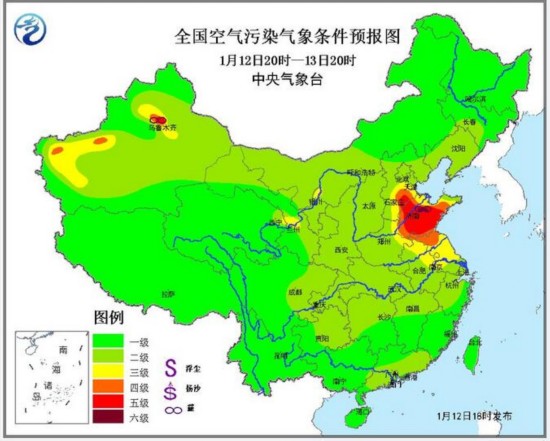 據(jù)中央氣象臺報(bào)道,12日20時(shí)至13日20時(shí),山東西部和南部、江蘇中西部、安徽南部、浙江北部、江西北部、湖北東部、湖南東北部等地有大霧。山東等地有輕至中度霾,局地重度霾,山東空氣污染氣象條件為4至5級。13日早晨起,上述地區(qū)霧、霾將自北向南逐漸減弱或消散。