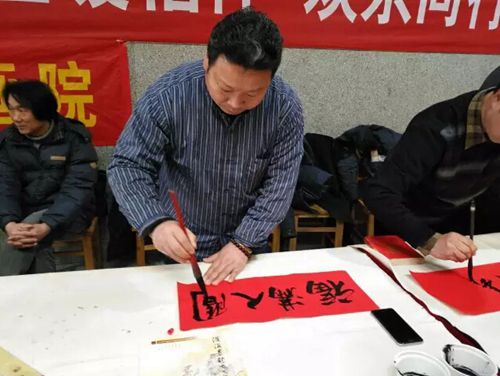 文化藝術(shù)交流協(xié)會會員、賈汪區(qū)政協(xié)委員田傳營老師寫春聯(lián)。