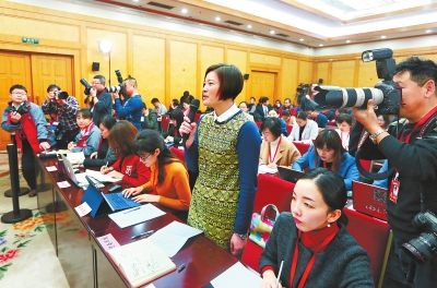 1月17日,在省十二屆人大七次會(huì)議記者會(huì)上,河南日?qǐng)?bào)記者正在提問。