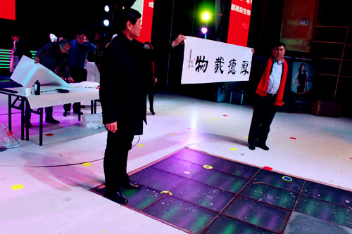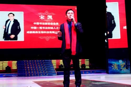 成都美淼生物科技的總裁宋凱先生本身是中國書法家協(xié)會會員,也是中國一筆書法創(chuàng)始人,從四歲就開始刻苦的研習書法。宋凱先生在本次見面會上進行了書法創(chuàng)作,現(xiàn)場嘉賓爭相上臺求墨寶。宋凱認真的書寫著,在座的人深深感覺到他今天的成功是認真努力的結(jié)果。成功的道路上并不是鋪滿鮮花,而是布滿荊棘的。宋凱的現(xiàn)場創(chuàng)作把晚會推向了高潮。
