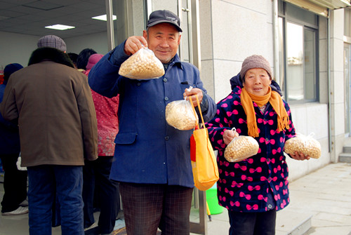 下午,黨委書記付化友在發(fā)放現(xiàn)場親自為村民遞上一袋袋的糖豆。80歲的祁大爺和老伴每人拎著兩袋糖豆,感激之情溢于言表,他動情地說:“社區(qū)逢年過節(jié)都想著咱,中秋春節(jié)發(fā)禮品,二月二發(fā)糖豆、端午節(jié)發(fā)粽子,咱沒想到的,領(lǐng)導(dǎo)都想到了,這酥脆香甜的糖豆咱吃在嘴里,美在心頭。”
