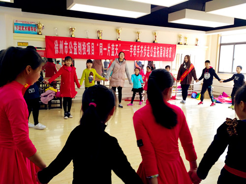 中國黃淮網(wǎng)訊(老藤 葉忠惠)325,風(fēng)和日麗,春風(fēng)宜人。在徐州下淀社區(qū)青少年之家活動中心里,一場“手牽手齊步走公益拓展訓(xùn)練營”正在熱鬧非凡地進(jìn)行著。這是由團(tuán)徐州市鼓樓區(qū)委青少年之家綜合服務(wù)平臺、徐州下淀社區(qū)七彩陽光青少年之家服務(wù)中心主辦,徐州醫(yī)科大學(xué)公共衛(wèi)生學(xué)院心青年志愿服務(wù)隊、公共衛(wèi)生學(xué)院16公管班聯(lián)辦的“同一片藍(lán)天”公益創(chuàng)投項目活動, 20多名流動人口子女參與。