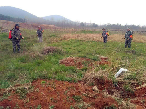 為防止火災(zāi)發(fā)生,接受往年因上墳燒紙不當(dāng)而引發(fā)火災(zāi)事故的教訓(xùn),及時(shí)消除火災(zāi)隱患,自325,鼓樓區(qū)豐財(cái)辦事處下淀社區(qū)出動(dòng)20余名志愿者,身背噴灑除草劑器械,把社區(qū)所轄坦克山至果園聯(lián)成一體的130畝荒地全部噴灑一遍,將火災(zāi)根源徹底鏟除。