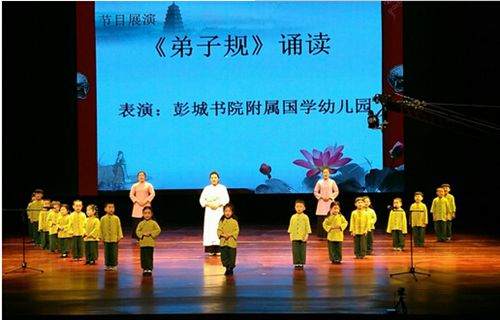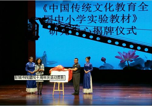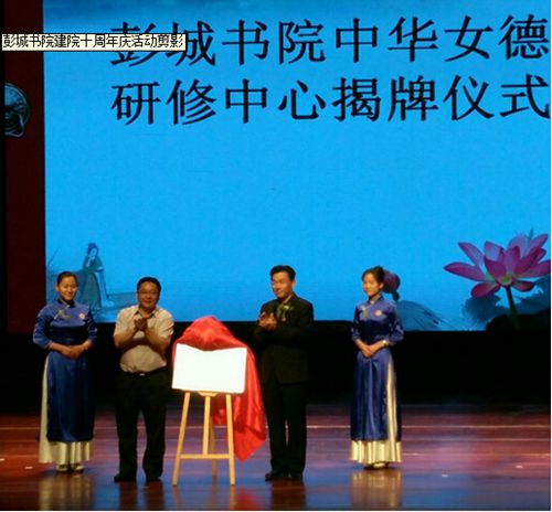 彭城書院資料:2017年5月1日上午,彭城書院十周年慶典暨2017徐州市海峽兩岸詩(shī)歌樂(lè)舞公益展演在徐州音樂(lè)廳隆重舉行。慶典活動(dòng)上,《中國(guó)傳統(tǒng)文化教育全國(guó)中小學(xué)實(shí)驗(yàn)教材》彭城書院研究中心、彭城書院中華女德研修中心、彭城書院全球同學(xué)會(huì)正式揭牌。