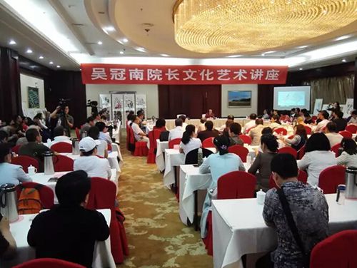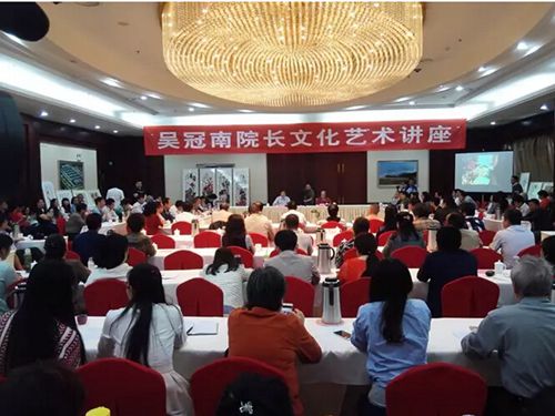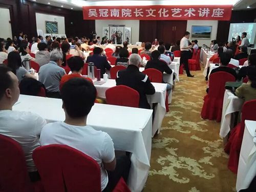 在講座中,吳冠南用圖文并茂的形式,以淵博的文化知識(shí)、深厚的書(shū)畫(huà)功底、豐富的創(chuàng)作經(jīng)驗(yàn)、高雅的藝術(shù)語(yǔ)言,深入淺出地詮釋了“中國(guó)畫(huà)大寫意精神”,使大家在聽(tīng)覺(jué)、視覺(jué)上獲得了美的享受,心靈、思想上產(chǎn)生共鳴,有了新的感悟。市政協(xié)委員表示,講座不僅讓人真正感受到了繪畫(huà)源于生活、高于生活的藝術(shù)魅力,真正感受到了弘揚(yáng)中國(guó)畫(huà)大寫意精神的藝術(shù)感染力,而且也讓大家切實(shí)感受到了傳承保護(hù)優(yōu)秀傳統(tǒng)文化、大力發(fā)展特色文化產(chǎn)業(yè)的歷史責(zé)任和時(shí)代重任。