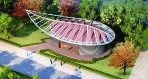 “四顆水滴”的江蘇大劇院成了南京新地標(biāo)。最近,細(xì)心的市民發(fā)現(xiàn),在大劇院入口處東側(cè),有一座外形酷似樹葉的建筑落成,它就是大劇院片區(qū)配套公共廁所。