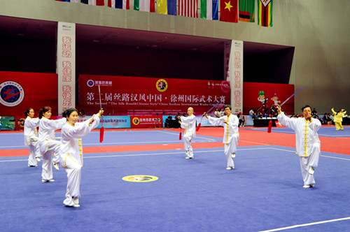 第二屆中國(guó)·徐州國(guó)際武術(shù)大賽自526開賽以來,來自江蘇、安徽、福建、山東、河南以及美國(guó)、德國(guó)、日本等地的242支代表隊(duì)2500多名武林高手進(jìn)行了激烈的角逐。比賽項(xiàng)目分為自選項(xiàng)目、規(guī)定項(xiàng)目、傳統(tǒng)項(xiàng)目三大類。其中自選包括長(zhǎng)拳類、南拳類、太極類,傳統(tǒng)項(xiàng)目包括陳式、楊式、吳式太極拳,詠春拳,形意拳,八卦掌等傳統(tǒng)拳術(shù),還有刀、劍、棍、槍、鞭等各類單雙器械,以及徒手、集體等對(duì)練項(xiàng)目。