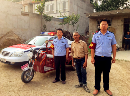 6月1日下午1時許,靈璧縣公安局副局長曾強帶隊從鄭廟村轉(zhuǎn)往楊集村督導轄區(qū)禁燒工作。當經(jīng)過楊疃鎮(zhèn)三鄉(xiāng)路時,發(fā)現(xiàn)一位老人騎著一輛電動三輪車從北向南對向駛來。就在這時,老人開車突然拐彎一下子橫在路上,接著慢慢后移,由于道路狹窄,車子突然失控翻到路邊溝坡上,老人瞬間被壓在三輪車底下。由于溝坡非常陡滑,處于傾斜狀態(tài)的三輪車還在緩慢下滑,而再往下半米,就是深達數(shù)米的水溝。一旦采取措施不當,極其容易導致人車落入深水,情況十分危急。駕駛員張瑞見狀,當即停車,副局長曾強迅速下車跑到出事地點,趕緊牢牢拽住三輪車,控制住繼續(xù)往深水滑落的危險。駕駛員張瑞站在坡邊,用肩膀扛住三輪車尾,民警呂春志配合副局長曾強把受傷老農(nóng)從三輪車下面拽出來,讓受傷群眾首先脫離了危險。接著,我們一行三人又采取多種措施,合力將電動三輪車拉到路面。