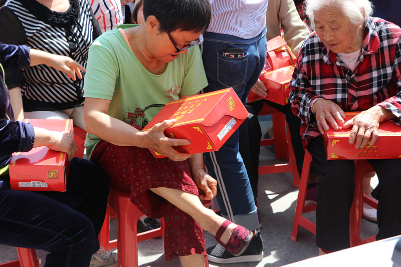 社區(qū)黨委書記付化友同志代表社區(qū)和社區(qū)黨委向社區(qū)55歲以上涉農(nóng)老人表示節(jié)日祝賀和衷心慰問,并為600余名55歲以上母親發(fā)放北京布鞋一雙。