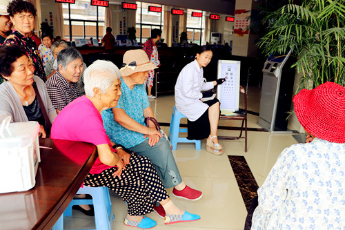 中國(guó)黃淮網(wǎng)徐州620訊(老藤)今天上午,徐州下淀社區(qū)一樓服務(wù)大廳里坐滿了老年人。只見兩個(gè)年輕女醫(yī)生在忙著為老人進(jìn)行視力目測(cè)和眼睛檢查。這是社區(qū)專門邀請(qǐng)徐州復(fù)興眼科醫(yī)院的醫(yī)生到社區(qū)免費(fèi)為老年居民進(jìn)行白內(nèi)障檢查。