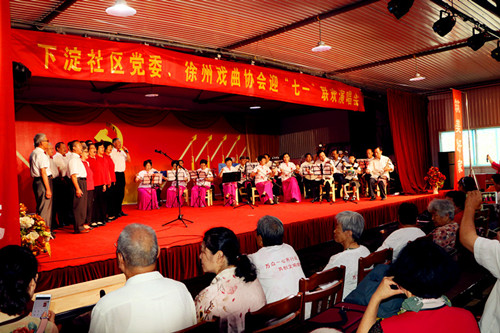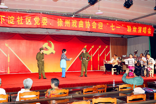 中國(guó)黃淮網(wǎng)徐州626訊(老藤)624上午,徐州下淀社區(qū)黨員活動(dòng)中心二樓會(huì)議室里,600座位的會(huì)場(chǎng)座無虛席。這是社區(qū)黨委為迎接建黨96周年、聯(lián)手徐州市戲曲協(xié)會(huì)的數(shù)十位戲曲名家,專門為黨員和居民獻(xiàn)上的一臺(tái)“慶七一” 戲曲專場(chǎng)演出。