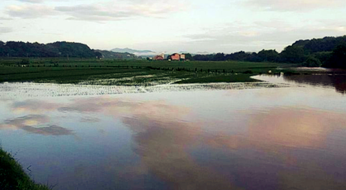 發(fā)源雙板橋灌區(qū)流經泉湖鎮(zhèn)鏡內的清花河,如同一位優(yōu)雅嫻靜的女子,慢慢地舒展開柔美的身姿。然而今年六月底一陣強降雨,讓人們始料不及的是,清花河變得喜怒無常起來,而小雨大雨暴雨似不斷線的珠子,頓時洪水滔滔,漁米之鄉(xiāng)成了汪洋澤國。洪水將青翠的大豆和灌漿飽滿的禾苗連根撥起,卷走得無影無蹤。稻田里的農作物被洗劫、摧毀一空,洪災過后留下滿目瘡痍。