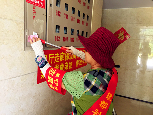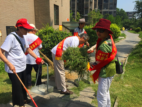 徐州環(huán)城街道銀郡社區(qū)志愿者冒酷暑參加創(chuàng)文行動