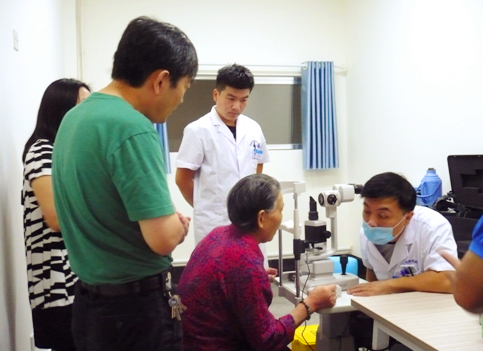 圖為滕州啟明眼科醫(yī)院醫(yī)生在為老年眼疾患者檢查