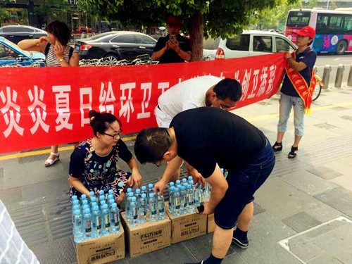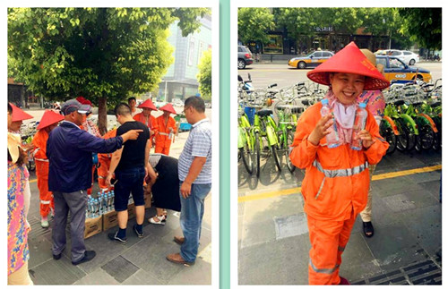 炎炎夏日愛心接力 環(huán)衛(wèi)工人喜迎清涼