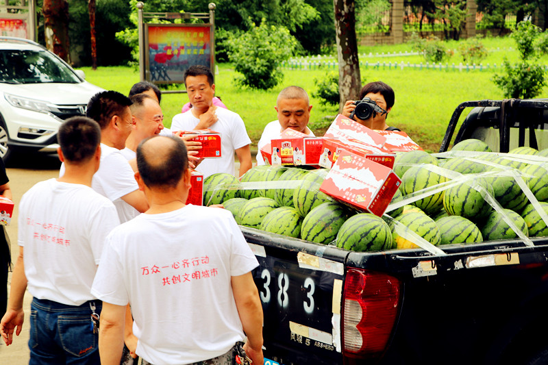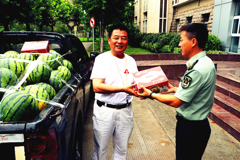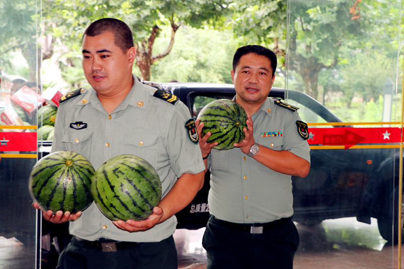 中國黃淮網(wǎng)訊(老藤)為紀(jì)念中國人民解放軍建軍90周年,喜迎十九大的召開,731日上午,徐州下淀社區(qū)黨委攜兩委成員在豐財辦事處劉主任、戴科長、董主任等帶領(lǐng)下,“八一”建軍節(jié)慰問了駐徐江蘇陸軍預(yù)備役高射炮兵第一師第五團(tuán)部隊官兵,贈送西瓜2000余斤西瓜和10箱拐子醬。對人民子弟兵保家衛(wèi)國,守衛(wèi)國防深表擁軍情誼。