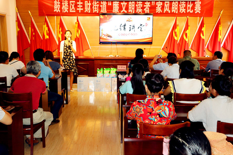 中國(guó)黃淮網(wǎng)訊(老藤)818下午,一場(chǎng)“廉文朗讀者,家風(fēng)朗讀比賽”在徐州下淀社區(qū)四樓會(huì)議室舉行。這是徐州市鼓樓區(qū)豐財(cái)街道辦事處和社區(qū)黨委共同舉辦的旨在弘揚(yáng)好家規(guī)帶出好家風(fēng),好家風(fēng)培育出好兒女的優(yōu)良傳統(tǒng)教育活動(dòng)。希望通過(guò)比賽,讓勤儉節(jié)約、誠(chéng)信友善、尊老愛(ài)幼、家庭和睦、忠孝仁義、禮義廉恥之風(fēng)發(fā)揚(yáng)光大,并將這種好家風(fēng)帶入社會(huì),有利于形成良好的社會(huì)風(fēng)尚,有利于構(gòu)建和諧社會(huì)。
