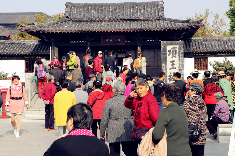 9點(diǎn)左右到達(dá)宿遷項(xiàng)王故里。這里是項(xiàng)羽的出生地,秦朝時(shí)叫梧桐巷?滴跛氖炅⒈詾榧o(jì)念。1935年建英風(fēng)閣和槐安亭。項(xiàng)王故里既有漢代民居特點(diǎn),又有宮殿式建筑風(fēng)格。主體建筑為三進(jìn)院落。前為高大的漢式石闕,象征項(xiàng)羽故居為帝王規(guī)格。中院以英風(fēng)閣為主體,閣內(nèi)為項(xiàng)羽高大塑像。四面墻上嵌著反映項(xiàng)羽生平十二幅浮雕,如項(xiàng)羽舉鼎、吳中起兵、破釜沉舟、巨鹿救趙、鴻門設(shè)宴、垓下突圍等等。英風(fēng)閣前面有霸王鼎,鼎高2.6,直徑1.9。重8噸,鼎上鑄銘文,記敘了項(xiàng)羽不朽的歷史功績(jī),古樸壯觀,氣勢(shì)雄偉。