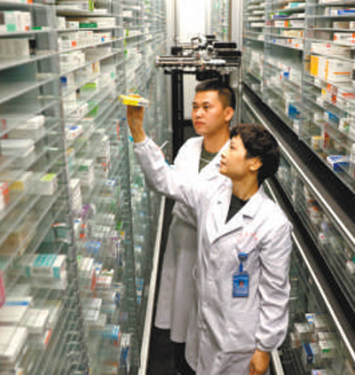 浙江湖州長興縣人民醫(yī)院工作人員在登記當(dāng)月短缺藥品。