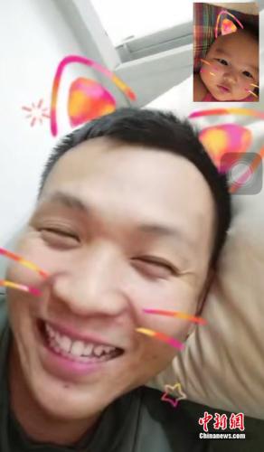 陳利丈夫在和孩子在視頻。受訪者供圖