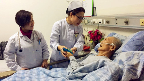 患者盧某,是一名消化道出血的病人,先天智障,只有一位80多歲的老父親與他相依為命,盧某生活幾乎不能自理。來住院的那天是年二十九,盧某頭發(fā)臟兮兮的,幾乎要打成了結(jié)。胡子像是許久沒有理過。仔細觀察之下,他的身上居然有好多虱子。面對此情此景,她毫不猶豫的去處置室,拿來了剪刀,剃須刀,為他剪發(fā),打理胡須,更換了所有的衣物,做除虱消毒處理。把一位“流浪漢”式的患者,打扮成一個干凈清爽的人。年三十那晚,她值夜班,在查房時,她見盧某與父親兩人在病房里孤零零的,大過年的,居然連一頓飯都沒好好吃過,甚是同情,她把自己的晚飯(院里給的餃子)送去給他們吃。