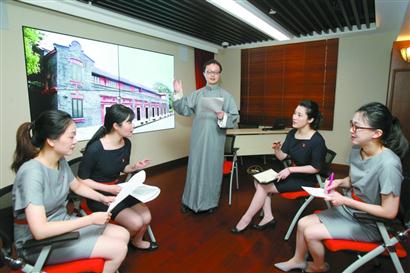 “因人施講”的背后,是講解者們更多的付出。每天17時(shí)參觀者散去后,在黨員的帶領(lǐng)下,所有講解者都會(huì)主動(dòng)留下來(lái)加班:打開(kāi)預(yù)約本,看看明天會(huì)來(lái)哪些參觀者,根據(jù)參觀者的情況進(jìn)行“備課”。