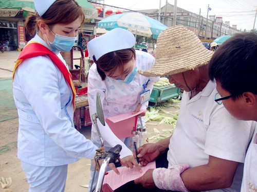 7月12日活動(dòng)當(dāng)天,該院呂福慶院長(zhǎng)、黨委宗德偉書(shū)記及王鳳琴副院長(zhǎng)等班子成員帶隊(duì),包括內(nèi)科、外科、精神科、兒科、婦產(chǎn)科等多位學(xué)科帶頭人及醫(yī)療骨干專(zhuān)家親臨經(jīng)濟(jì)技術(shù)開(kāi)發(fā)區(qū)徐莊鎮(zhèn)毛莊集市,為當(dāng)?shù)鼐用裉峁┟赓M(fèi)健康咨詢。