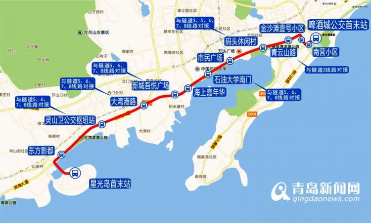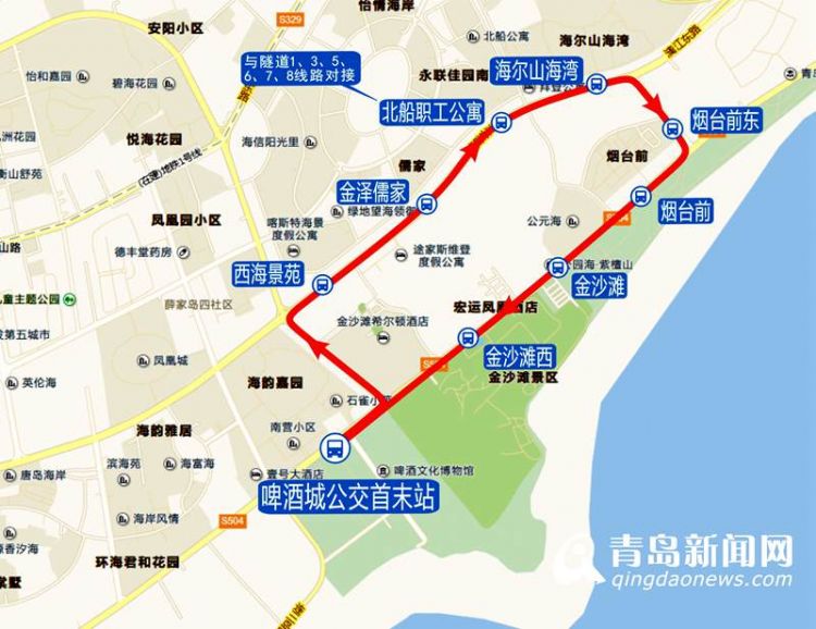 啤酒節(jié)期間,新區(qū)將臨時開通日發(fā)130班次的啤酒節(jié)免費接駁線1條(單向環(huán)線運行),線路走向由啤酒城公交首末站發(fā)車經(jīng)金沙灘路、嘉陵江東路、漓江路、云霧山路、金沙灘路到達(dá)啤酒城公交首末站。同時,為滿足萬達(dá)茂和新城吾悅廣場等商業(yè)中心、靈山衛(wèi)公交樞紐站及濱海大道沿線周邊居民快速到達(dá)啤酒城,新區(qū)臨時開通星光島至啤酒城公交首末站的啤酒節(jié)公交快線。
