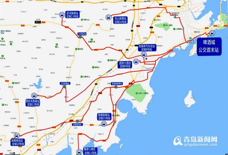 另外,新區(qū)增開西部鎮(zhèn)街、功能區(qū)至金沙灘啤酒城8條定制公交線路,線路覆蓋西海岸汽車總站(定制8號線)、國旅大酒店(定制9號線)、海青鎮(zhèn)(定制10號線)、董家口港區(qū)(定制11號線)、理務(wù)關(guān)(定制12號線)、膠河經(jīng)濟(jì)區(qū)(定制13號線)、瑯琊鎮(zhèn)(定制15號線)、寶山鎮(zhèn)(定制16號線)等地。其中,8號線、9號線票價10元/人,日發(fā)2班次;10-16號線票價12元/人,日發(fā)3班次。