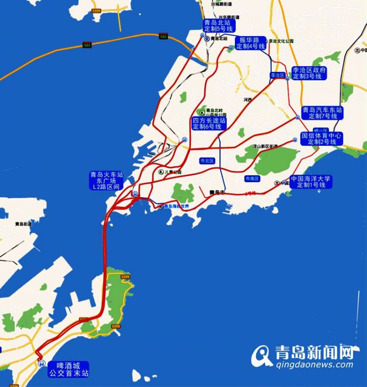 更值得關(guān)注的是,新區(qū)新增青島市區(qū)至金沙灘啤酒城7條定制公交線路,線路覆蓋青島火車站(L2區(qū)間線路)、中國海洋大學(xué)浮山校區(qū)南門(定制1號線)、國信體育中心(定制2號線)、李滄區(qū)政府(定制3號線)、振華路(定制4號線)、青島北站(定制5號線)、四方長途站(定制6號線)、青島汽車東站等地(定制7號線)。其中,7條啤酒節(jié)定制線路均為票價10元/人,1號線日發(fā)4班次,2-7號線日發(fā)2班次。
