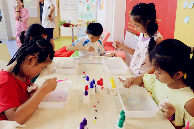 下淀社區(qū)20余名6~12歲學(xué)齡兒童及家長參加了開營儀式。社區(qū)黨委書記付化友同志致詞。此次活動旨在豐富學(xué)齡兒童假期生活,培養(yǎng)動手能力,增進人際交往能力,渡過一個快樂健康有意義的暑假。隨后,兒童們進行了“巧奪天工”青少年非物質(zhì)文化遺產(chǎn)創(chuàng)意空間——水影畫DIY的制作實踐和“逆境挑戰(zhàn)”少兒“逆商”訓(xùn)練心靈成長游戲活動。