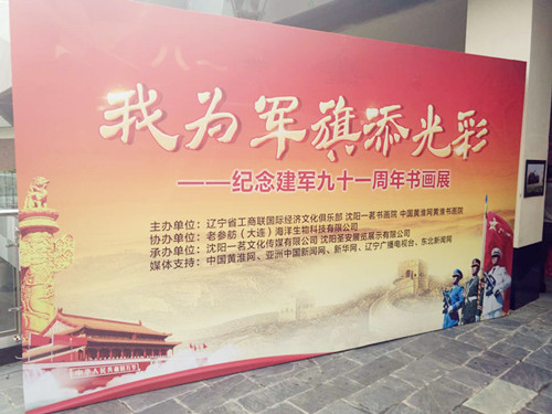 中國黃淮網(wǎng)訊(劉德明 郭濱 劉晶)728日上午,遼寧省工商聯(lián)國際經(jīng)濟文化俱樂部、沈陽一茗書畫院和中國黃淮網(wǎng)黃淮書畫院共同舉辦《“我為軍旗添光彩——紀念建軍九十一周年書畫展”》活動。