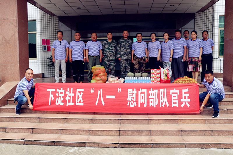 中國(guó)黃淮網(wǎng)訊(老藤)為紀(jì)念中國(guó)人民解放軍建軍91周年,繼續(xù)做好新形勢(shì)下社區(qū)的雙擁工作,進(jìn)一步促進(jìn)軍民團(tuán)結(jié),731日上午,徐州豐財(cái)街道辦事處劉馨陽(yáng)副主任,民政郭科長(zhǎng)、下淀社區(qū)黨委書(shū)記付化友帶領(lǐng)社區(qū)兩委班子成員,帶著哈密瓜、蘋(píng)果、水蜜桃、鹽汽水等夏季防暑降溫食品,先后走訪慰問(wèn)了徐州楊莊消防中隊(duì)和駐地倉(cāng)庫(kù)部隊(duì)官兵。