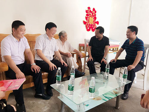 孫榮清老同志是浙江省嘉興市平湖市食品公司離休干部,現(xiàn)年90歲高齡,現(xiàn)居住在安徽蕭縣孫圩子鄉(xiāng)。在老干部家中,詹茂偉關切的詢問了他的健康狀況、生活情況,傾聽老人的訴求,再三叮囑他要保重身體、安享晚年,黨和人民一定不會忘記為祖國做過貢獻的老功臣,并送上浙江省委的慰問信和慰問金,蕭縣老干部局也送上慰問品。