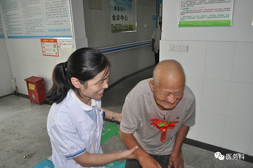 內(nèi)一科主管護師董薇熱情招待遠來的老戰(zhàn)士
