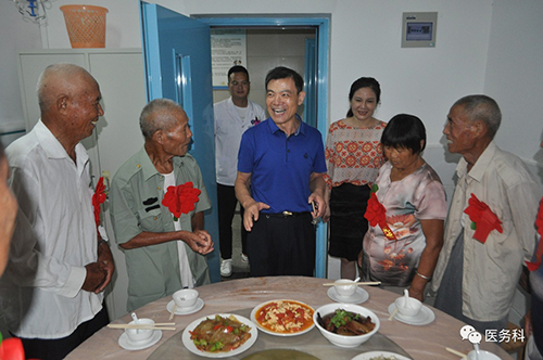 徐州民政醫(yī)院黨總支部書記、院長楊永密在午飯期間代表院領(lǐng)導(dǎo),向參加此次短期療養(yǎng)的重點優(yōu)撫對象致歡迎詞,對共和國的功臣們表達了誠摯的敬意,并預(yù)祝他們療養(yǎng)期間快樂安康,一切如意!