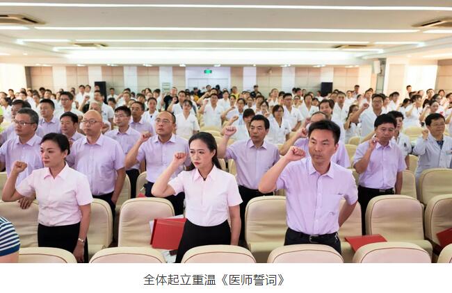 活動中,領(lǐng)導和來賓分別向獲獎的26名“一院名醫(yī)”和23名“優(yōu)秀青年醫(yī)師”頒發(fā)榮譽證書,醫(yī)師代表向退休的老醫(yī)師代表獻花,活動中,全體起立重溫《醫(yī)師誓詞》。