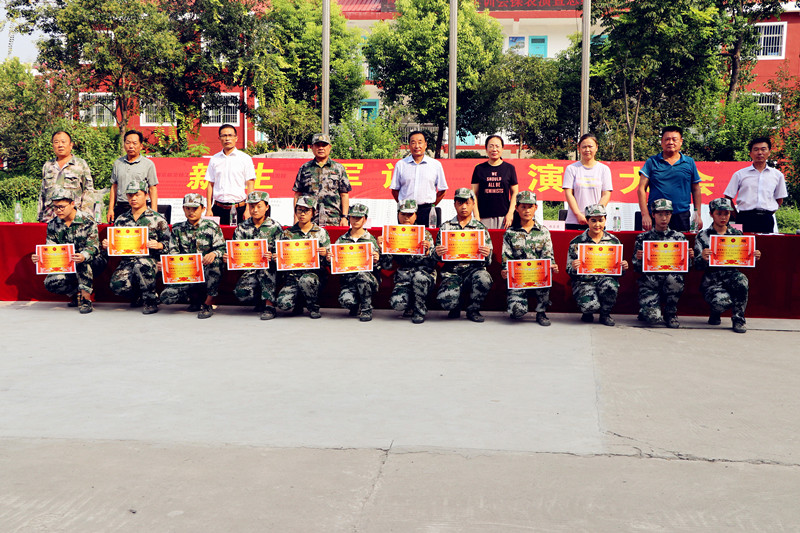 表演結(jié)束后,學(xué)校領(lǐng)導(dǎo)向在軍訓(xùn)中表現(xiàn)突出的優(yōu)秀學(xué)員和軍訓(xùn)教官進(jìn)行了表彰,并號(hào)召所有學(xué)員向他們學(xué)習(xí),以飽滿熱情和積極向上的態(tài)度投入到新的學(xué)習(xí)與生活中去。