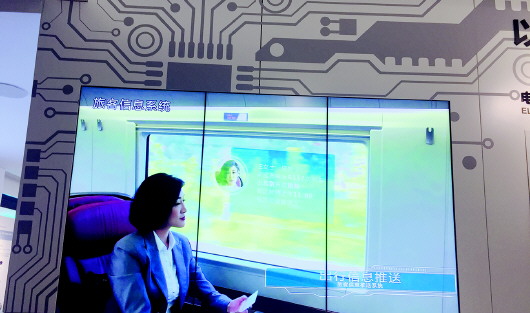 “這就是我們的新一代旅客信息系統(tǒng),通過這個(gè)系統(tǒng),乘客不僅可以透過玻璃看到美景,還可以看視頻、電視直播,讀新聞,逛網(wǎng)店。”10月22日,在中車四方所創(chuàng)新展示中心內(nèi),一塊透明的車窗變成了Pad屏幕,可以觸屏切換功能,看電影、玩游戲、上網(wǎng)。這是中車四方所自主研發(fā)的旅客信息系統(tǒng)和智能顯示系統(tǒng),基于衛(wèi)星通訊,將給乘客帶來車載娛樂等全新的服務(wù)體驗(yàn)。