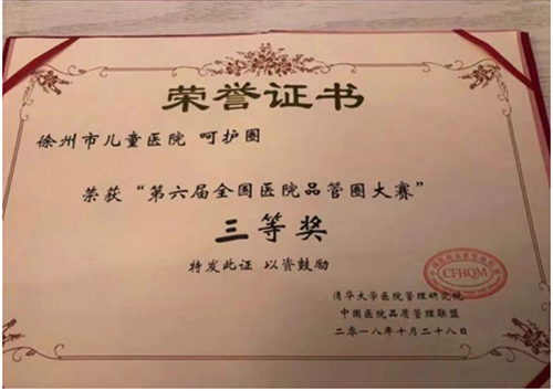 徐州市兒童醫(yī)院榮獲”第六屆全國醫(yī)院品管圈大賽”三等獎
