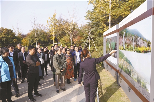 經(jīng)過(guò)徐賈快速通道,車隊(duì)駛?cè)肱税埠䥽?guó)家濕地公園。鷺影飛舟何處飲,池杉岸柳已成蔭。沿著習(xí)總書(shū)記走過(guò)的地方一路參觀,人們心情十分激動(dòng)。在湖畔“轉(zhuǎn)型之路”展示廳看過(guò)展覽,聽(tīng)了講解,再通過(guò)實(shí)地參觀,大家對(duì)潘安湖的前世今生有了更深入的了解。