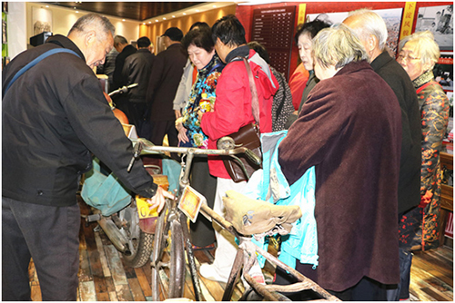 在下淀記憶館里,數(shù)百幅留有歲月印記的照片和上百件生產(chǎn)生活用品,成為老師們鄉(xiāng)愁記憶的情感紐帶。從破舊的村落、落后原始的農(nóng)耕工具、生產(chǎn)大隊牌匾、計劃經(jīng)濟時代的各類票證、耗油驚人的摩托車到草屋變瓦房、小樓房比比皆是、村民生活日漸提高、充滿幸福感的張張笑臉、社區(qū)組織老年人旅游等等。這一切,無不記錄著下淀的歷史文化和天翻地覆的發(fā)展變化。每一幅圖片,每一件實物都是一段耐人尋味的記憶,展示著本土文化的魅力。每一幅老照片,都會引起老師們久久的駐足觀看、品評、感慨。每一幅老照片,似乎都在向人們講述著下淀人不怕艱難困苦、無私奉獻的故事,它用無聲的印跡昭示著一個村落發(fā)展前行的力量。