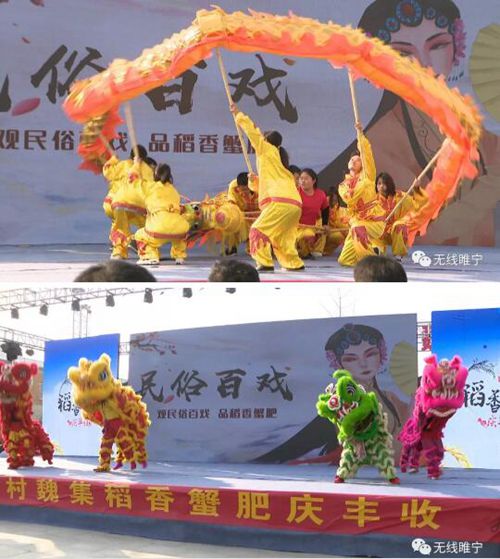 歡歌載舞,喜慶豐收節(jié)。在極具特色的龍舞表演中,中國(guó)·睢寧魏集稻蟹豐收節(jié)正式啟動(dòng)。